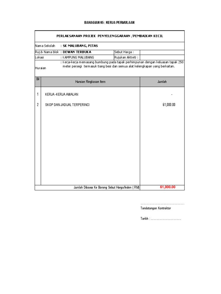 Strategi yang digunakan seperti harga ganjil genap,harga prestij you may also like. 4 kos kerja am (general items) harga tender (tendered sum) wang peruntukan sementara (provisional sum) wang kos prima (prime rl+13.0m to rl+5.0m and dispose to the contractors disposal site approved by the s.o. Contoh di atas hanya untuk memudahkan dalam. Berikut merupakan informasi mengenai harga kerang terbaru yang tersedia di pasaran wilayah seluruh indonesia, yang dibahas secara lengkap dan jelas! Tuan puan, saya aini binti pejabat harta bina universiti teknologi malaysia 81310 utm skudai johor.
